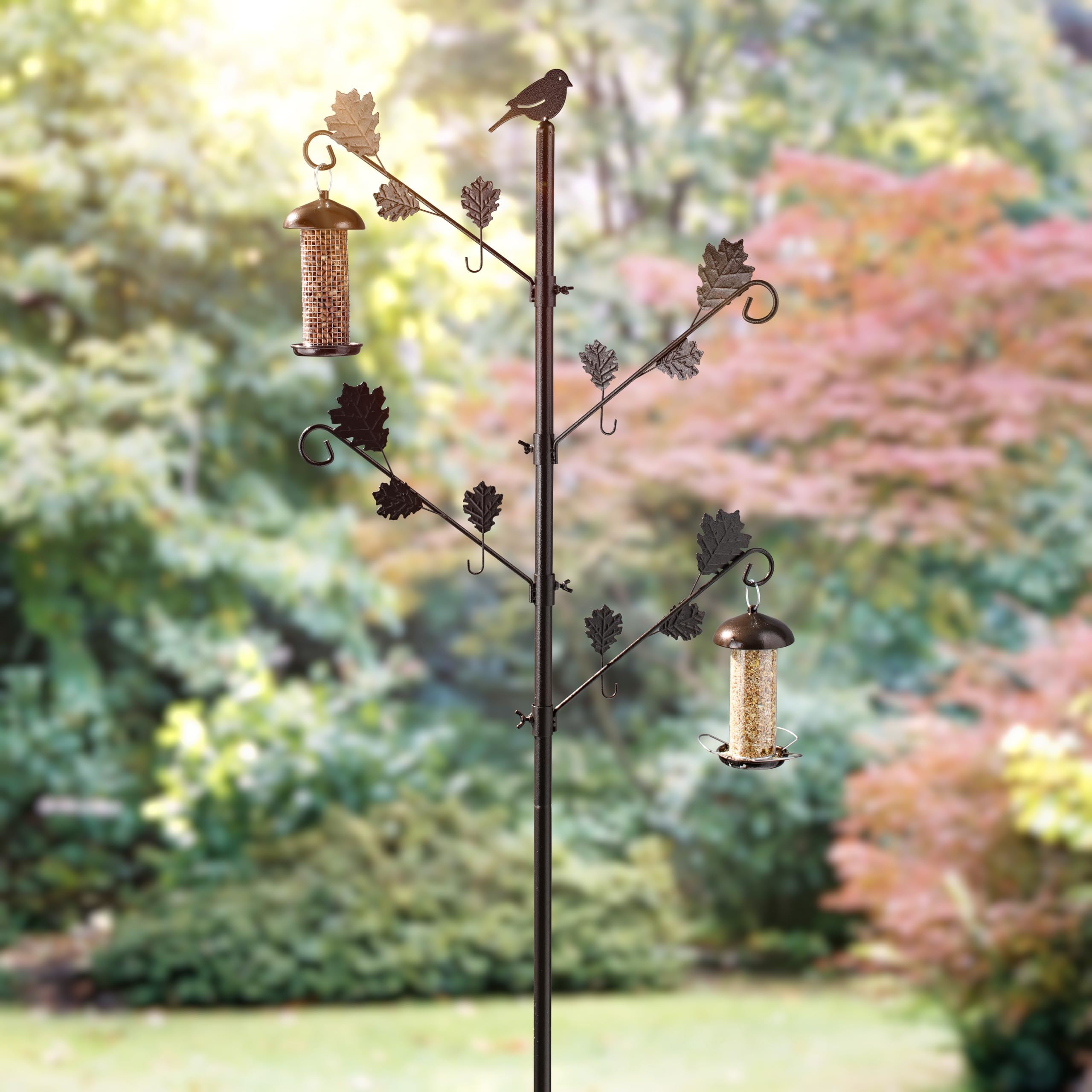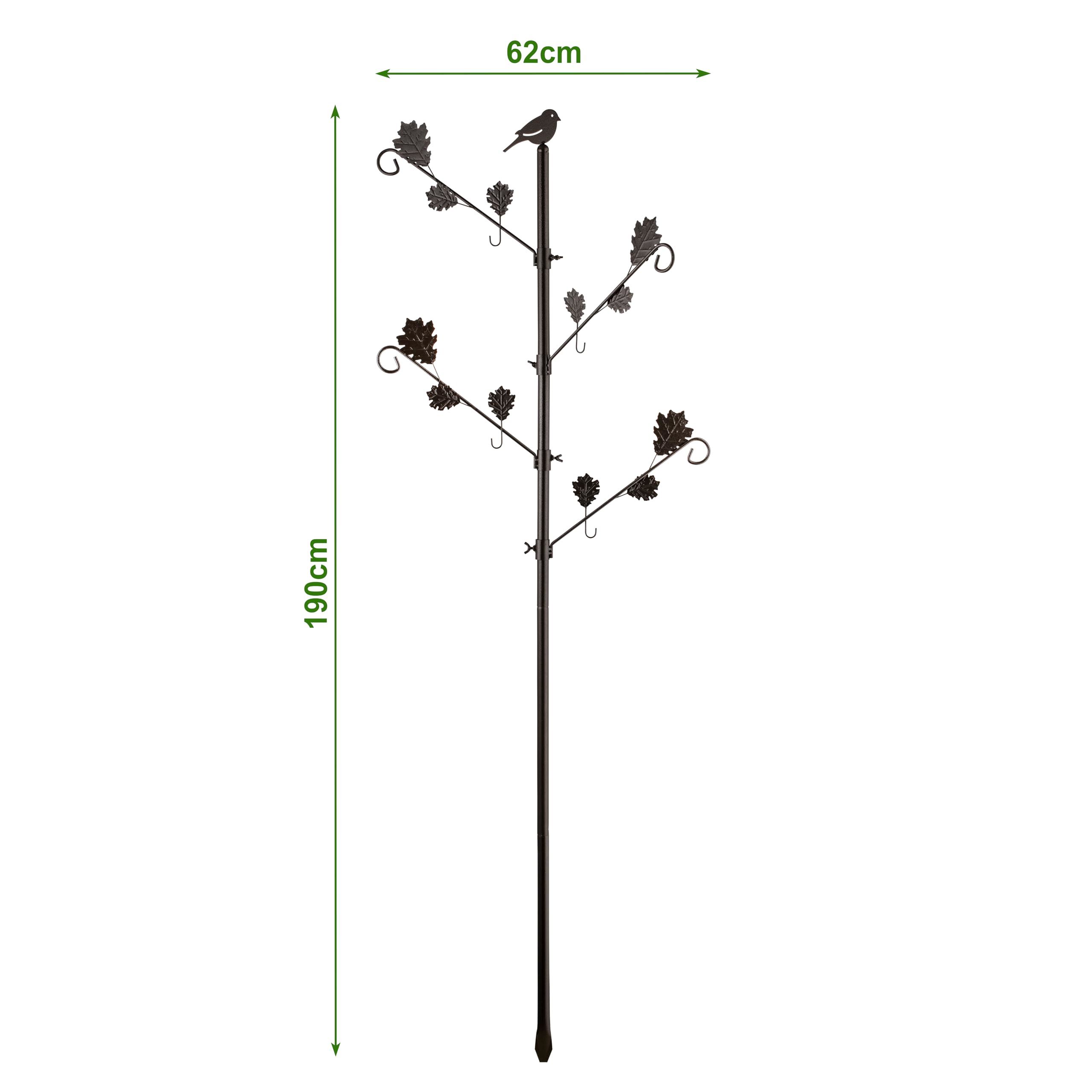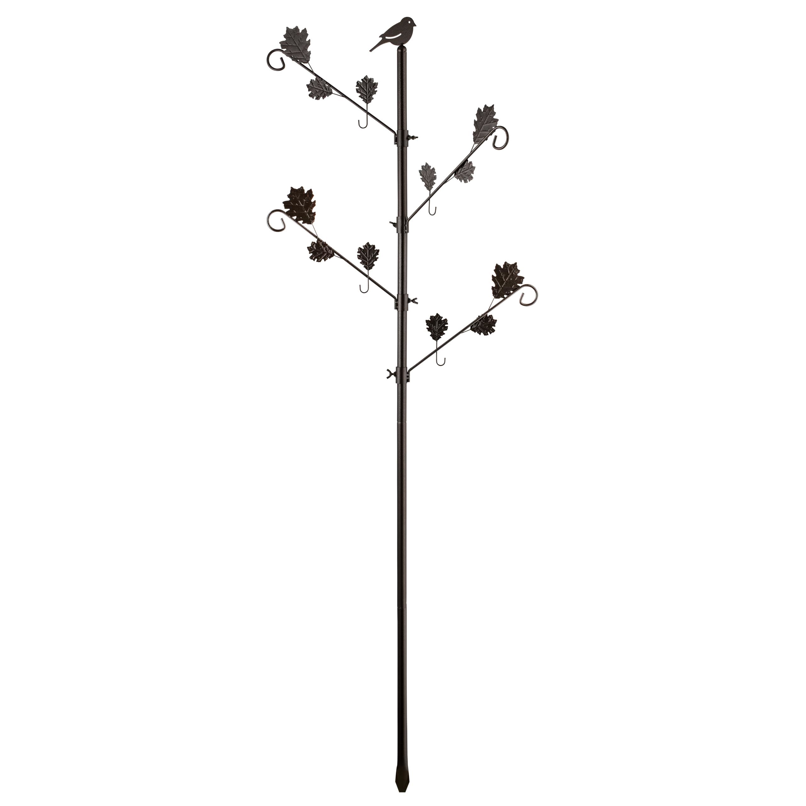 Create a charming wildlife haven in your garden with this Bird Feeding Station featuring a decorative leaf-and-branch design and multiple hooks for hanging feeders and accessories. Sturdy, stylish, and functional, it’s perfect for year-round bird watching and garden enhancement. (Note: Feeders not included.)