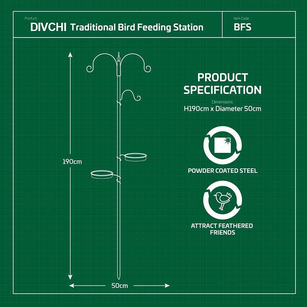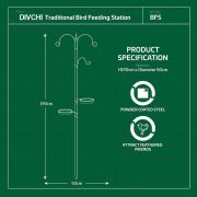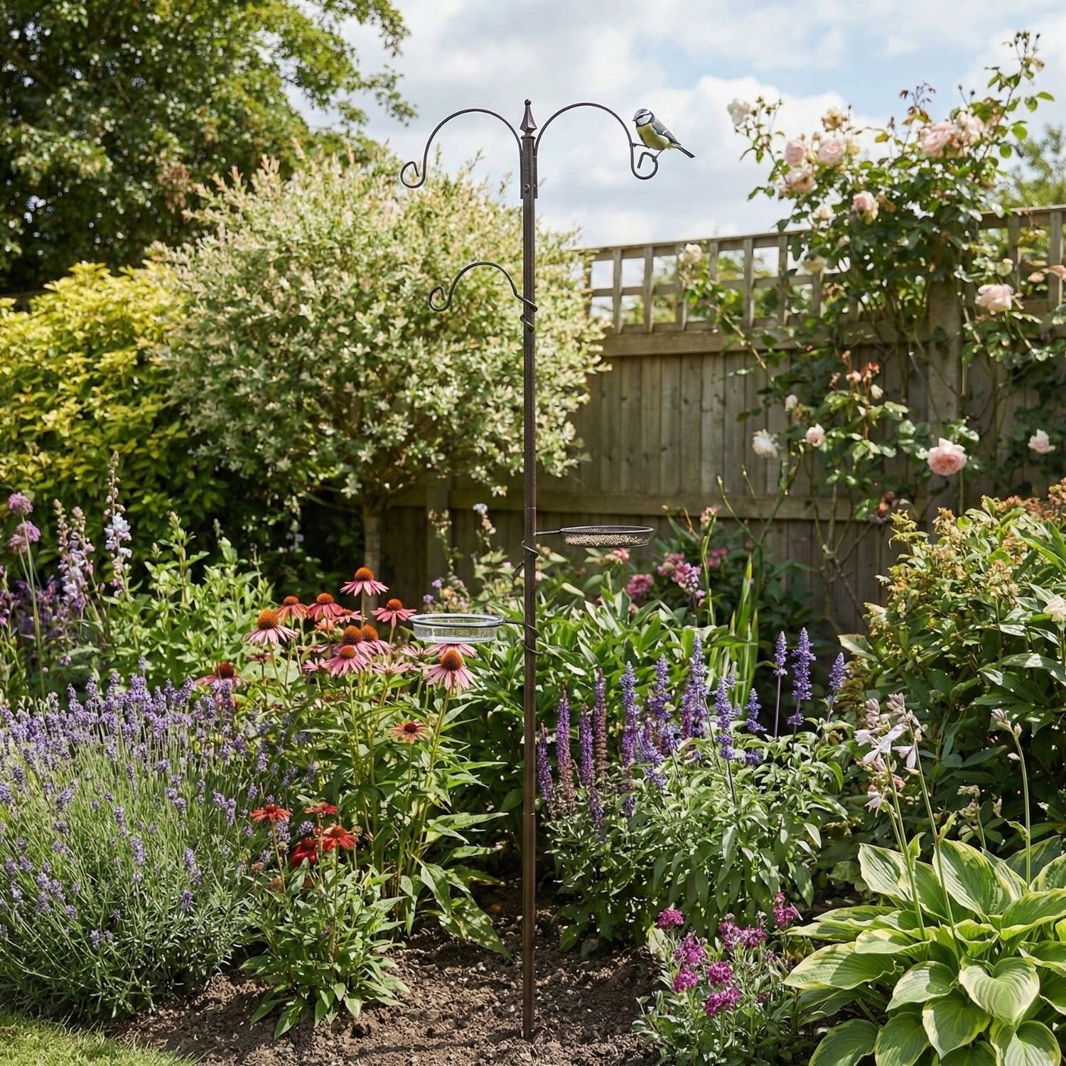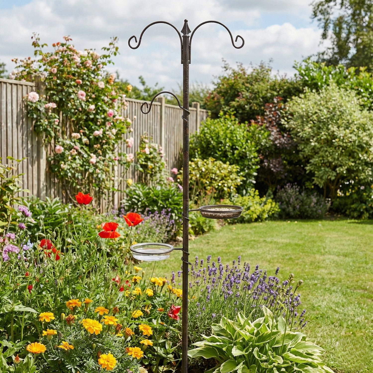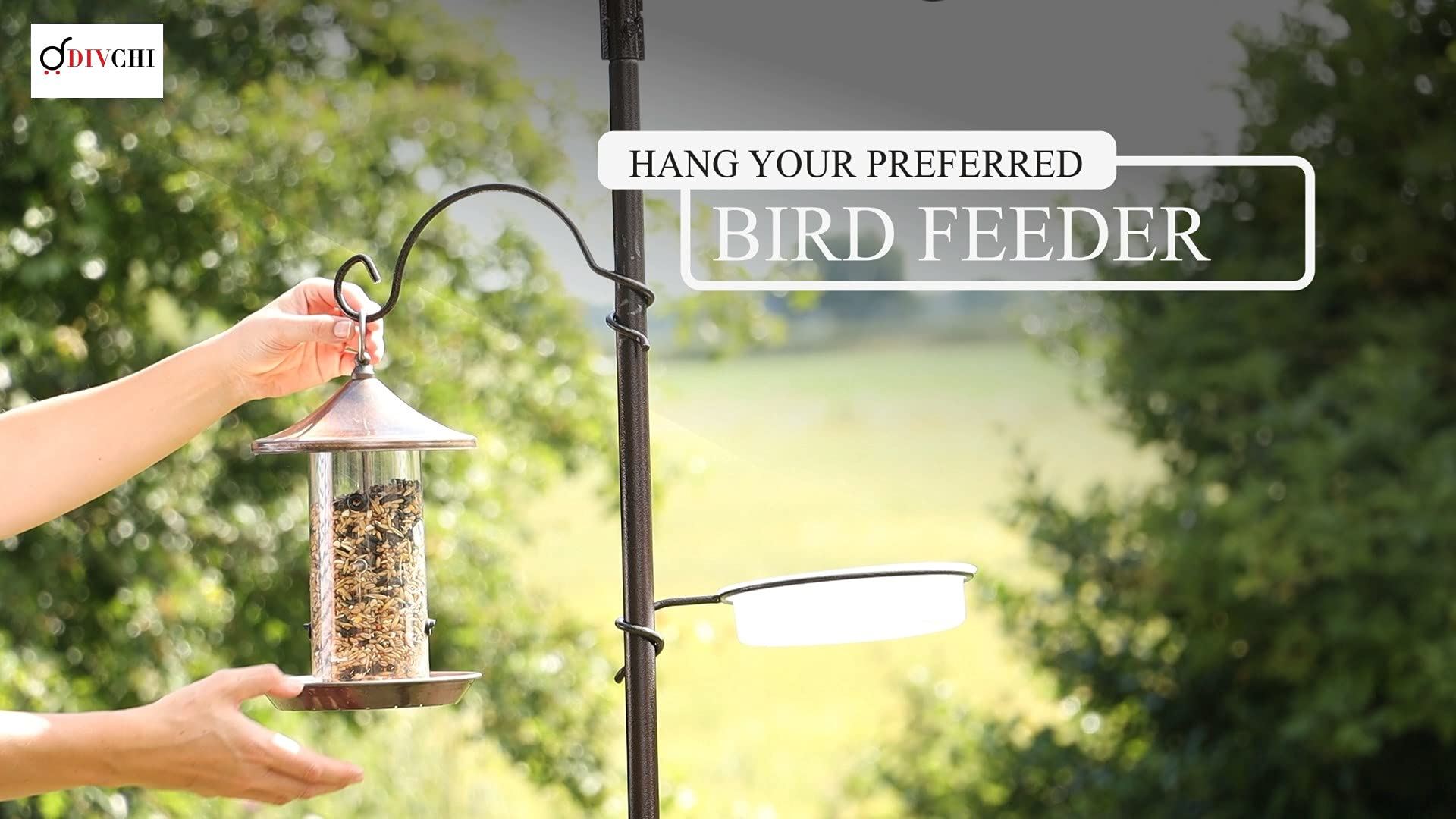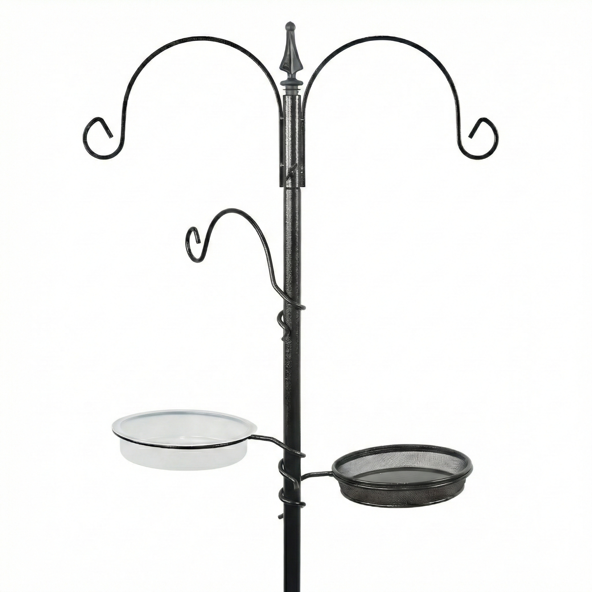 With a 3-part pole system and multiple brackets, this bird station includes a water dish, mesh dish, and hanging hooks — offering food, hydration, and rest spots all in one place.