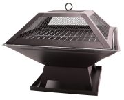 Nurture & Bloom Square Outdoor Fire Pits, Fire Pits for Garden with BBQ, Garden Heater Outdoor BBQ Camping, Portable Fire Pit with Poker, Grate, Grill and Cover