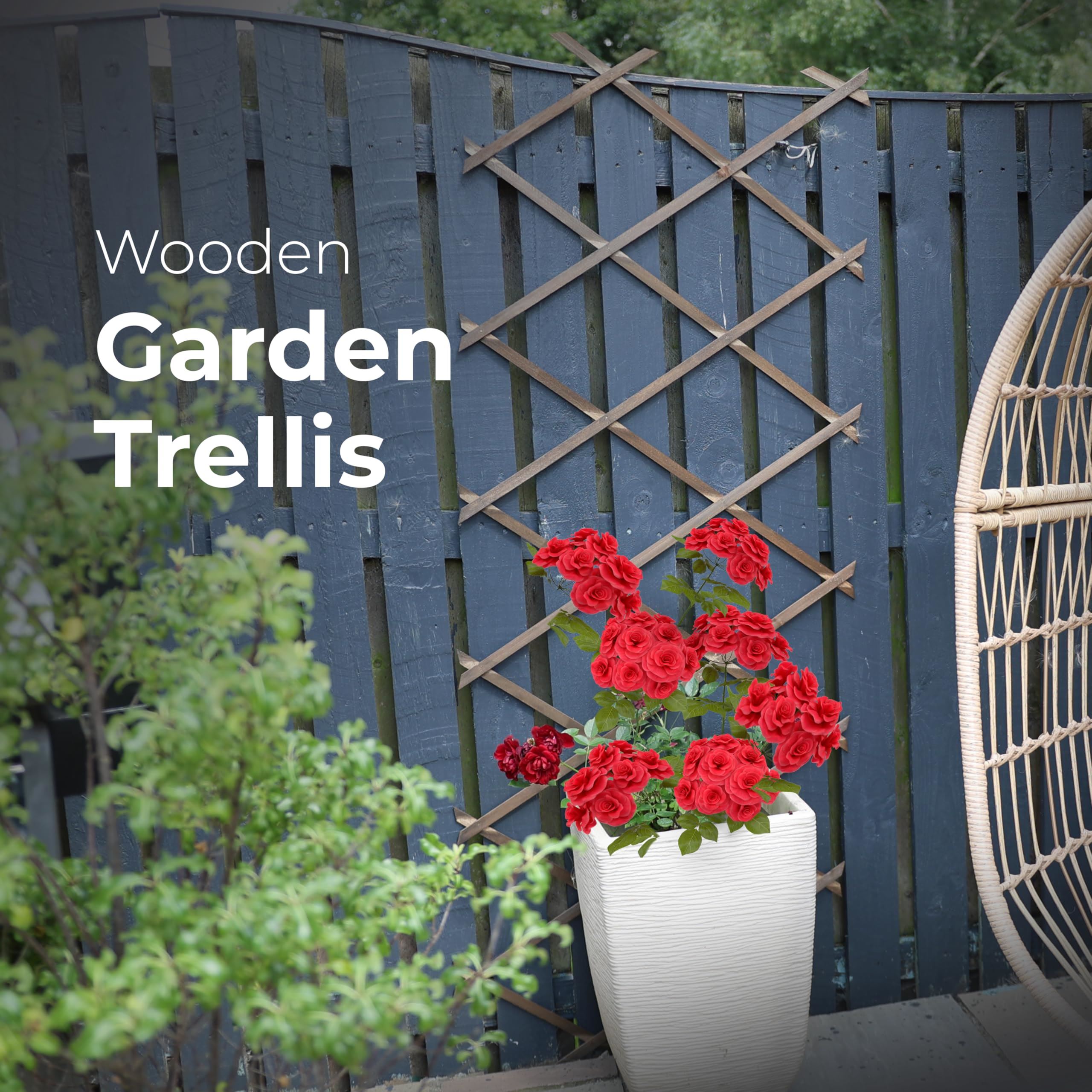 Lightweight yet sturdy, this trellis can be wall-mounted, leaned, or used freestanding. The lattice design allows for creative customisation in any setting.