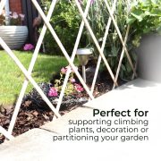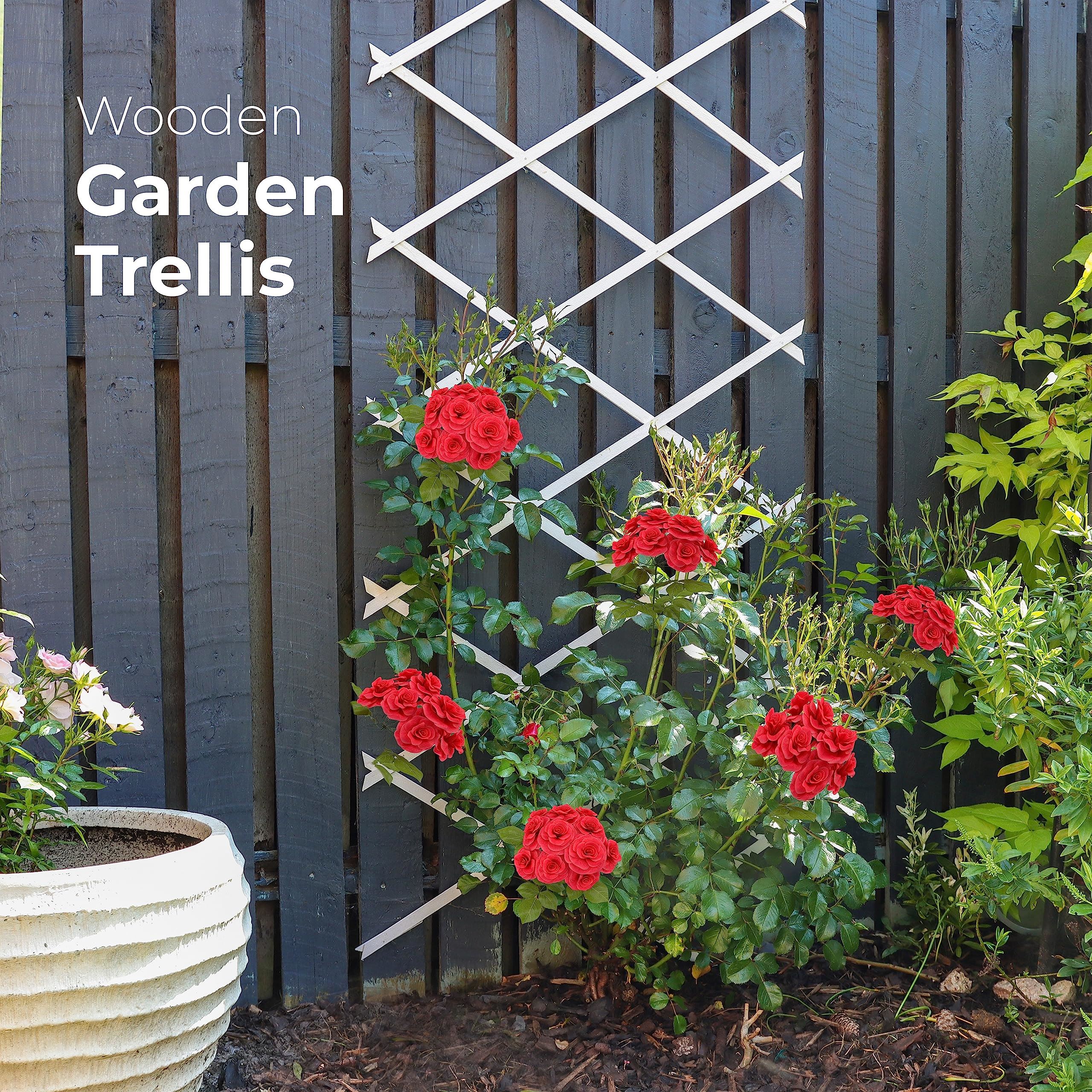 Stretch or compress the slats to suit your space. Whether you need a narrow accent piece or a broader support structure, this trellis adapts easily for both indoor and outdoor use.